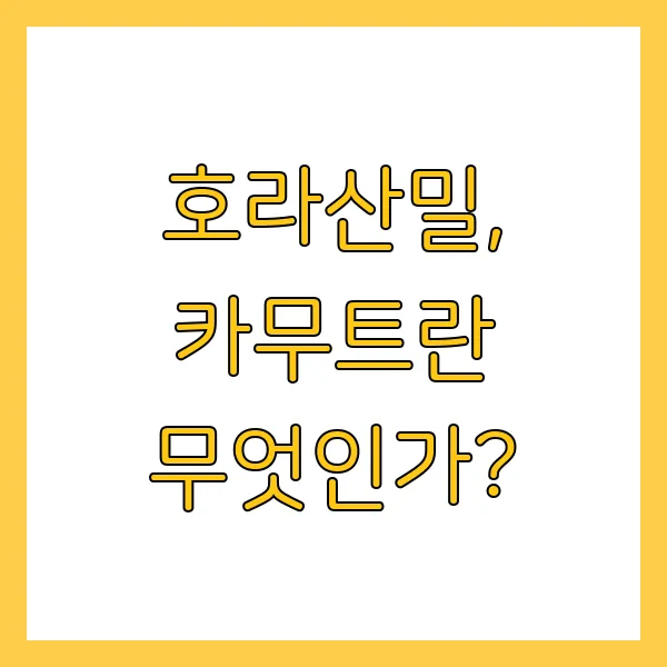 호라산밀은 수천 년 전 고대 이집트에서 재배되던 곡물로, 특히 투탕카멘 왕의 무덤에서 발견되어 '왕의 밀'이라고도 불립니다. 오랜 세월 동안 잊혀졌던 이 곡물은 최근 영양학적 가치가 재조명되면서 다시금 주목받고 있습니다. 카무트는 호라산밀의 특정 브랜드명으로, 엄격한 품질 관리하에 생산되는 호라산밀을 지칭합니다.